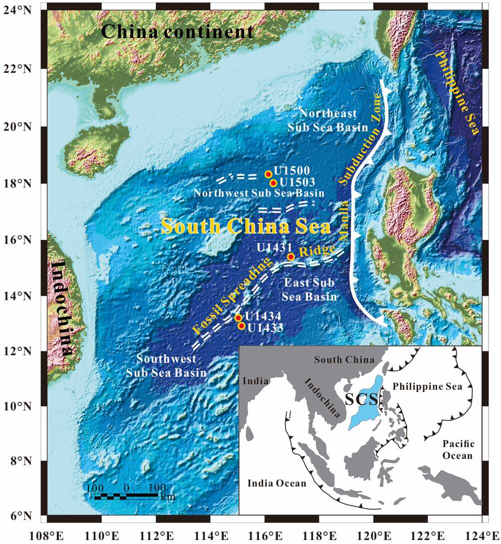 图1 IODP U1500、U1503、U1431、U1433和U1434站位分布图
