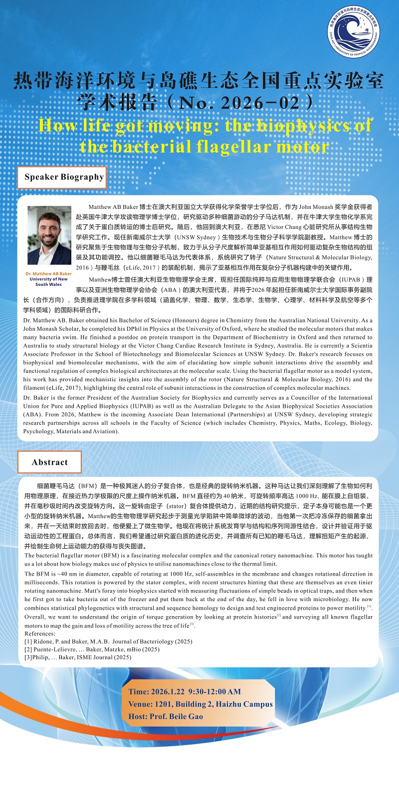 【11月14日热带海洋环境与岛礁生态全国重点实验室学术报告】How life got moving: the biophysics of the bacterial flagellar motor