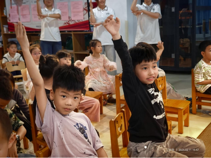 小朋友认真聆听并积极举手回答问题