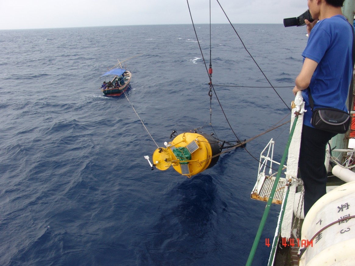2010年9月3日下午17时,在经过大雨洗礼的南海海洋所“实验3”号船后甲板上,科调队员和船员们一张张雨水混杂着汗水的脸上露出了成功的喜悦—海洋光学观测系统成功投放于南海北部某海域。