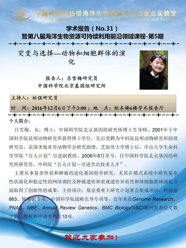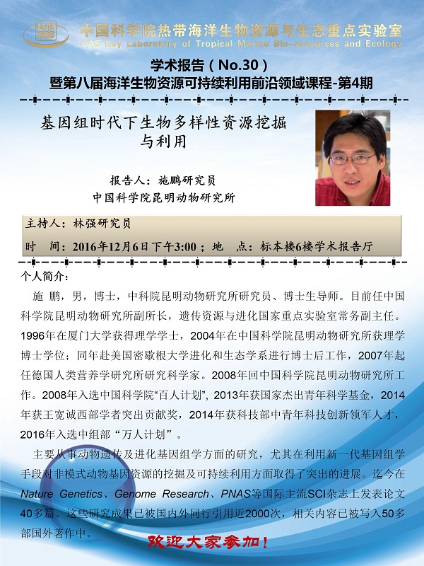 【12月16日LMB学术报告及海洋生物资源可持续利用前沿领域课程】
