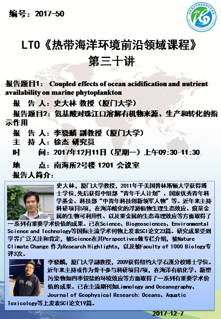 【12月11日LTO《热带海洋环境前沿领域课程》第三十讲】