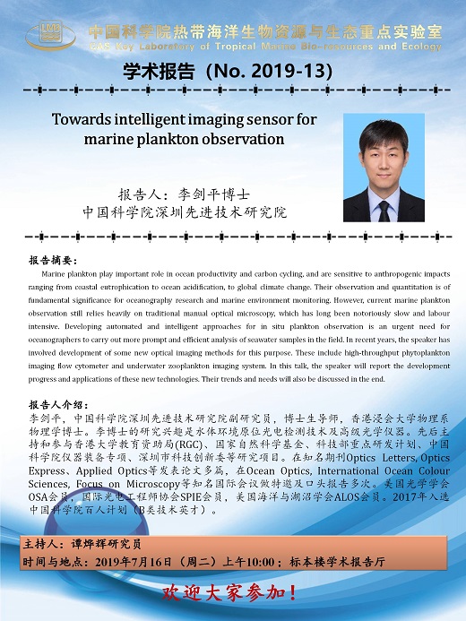 【7月16日LMB学术报告】Towards intelligent imaging sensor for marine plankton observation