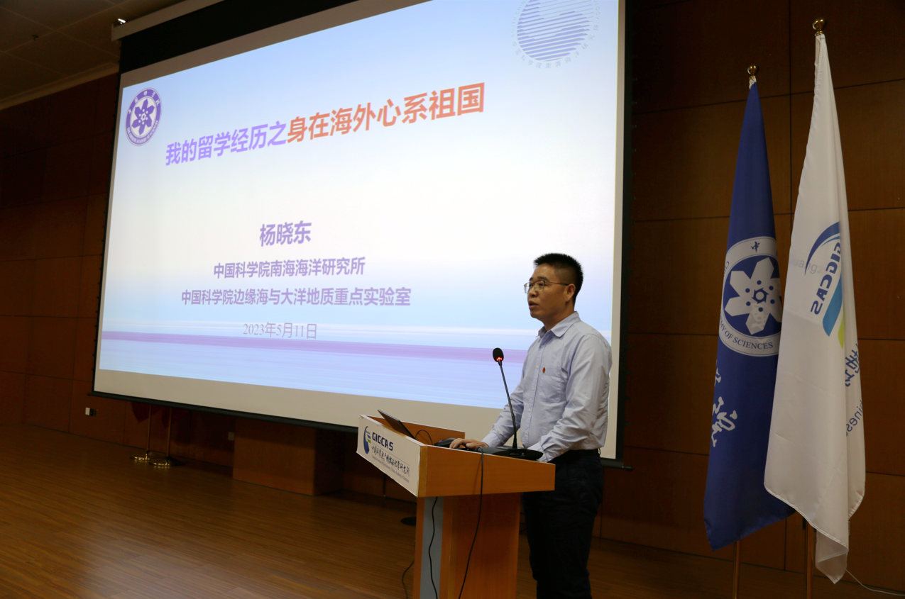 广州分院直属机关党委专职副书记郭震宣读了优秀青年科技工作者表彰决定。陈广浩为获奖者颁奖。作为优秀青年科技工作者代表,杨晓东以《我的留学经历之身在海外心系祖国》为题作交流,分享了自身的成长经历、科研经历、研究意义,重点讲述了两次在海外欢迎习近平主席出访的经历,以及参加中科院2023年新近归国科研骨干政治素质进修班的经历,彰显了当代青年科学家爱党爱国、矢志创新、开拓进取的精神风貌。