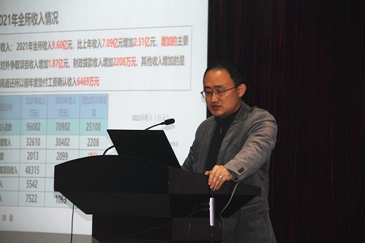副所长杜岩作2021年度所财务工作报告,党委副书记、纪委书记刘民义宣读2021年度表彰先进集体和个人的决定。