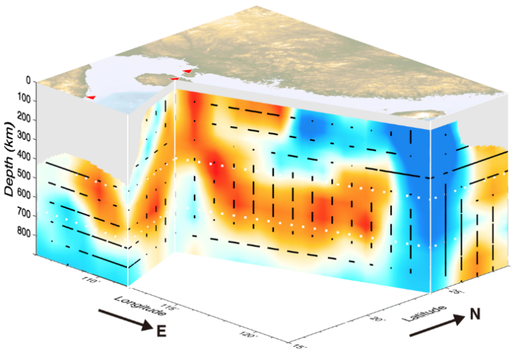 南海北部陆缘上地幔各向异性透视成像三维立体影像图