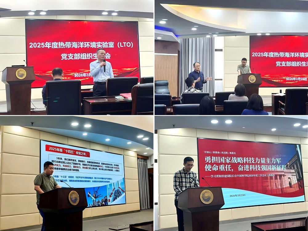 3月24日,热带海洋环境实验室(LTO)第一党支部与第二党支部联合召开2025年度组织生活会和党员民主评议工作会。会议由第一党支部书记徐康主持,所党委书记谢昌龙、所党委委员杜岩到会指导。