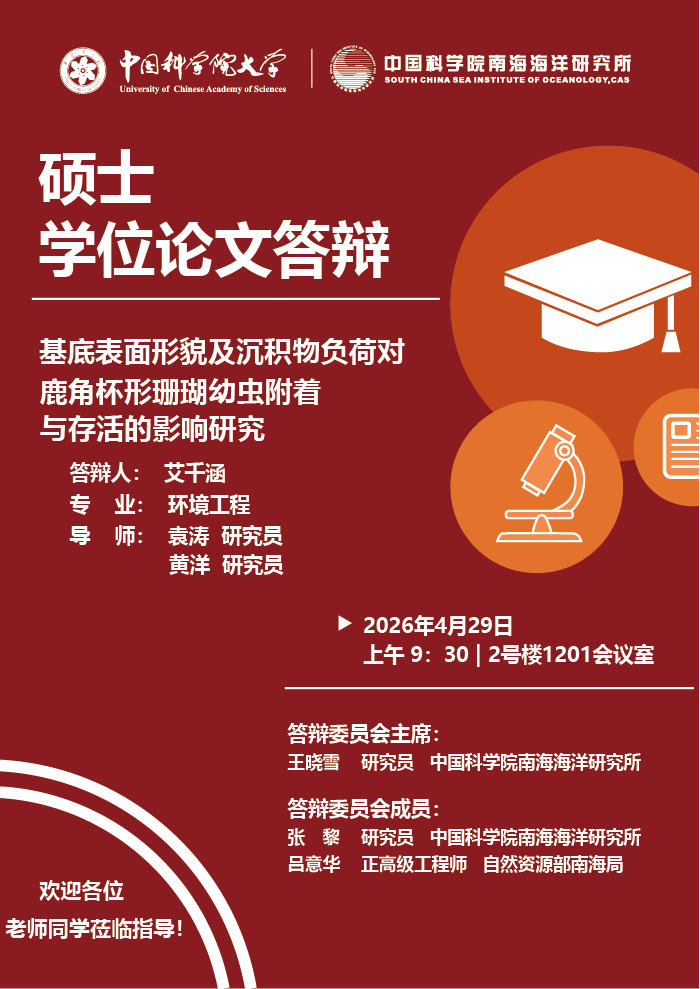 艾千涵答辩:基底表面形貌及沉积物负荷对鹿角杯形珊瑚幼虫附着与存活的影响研究