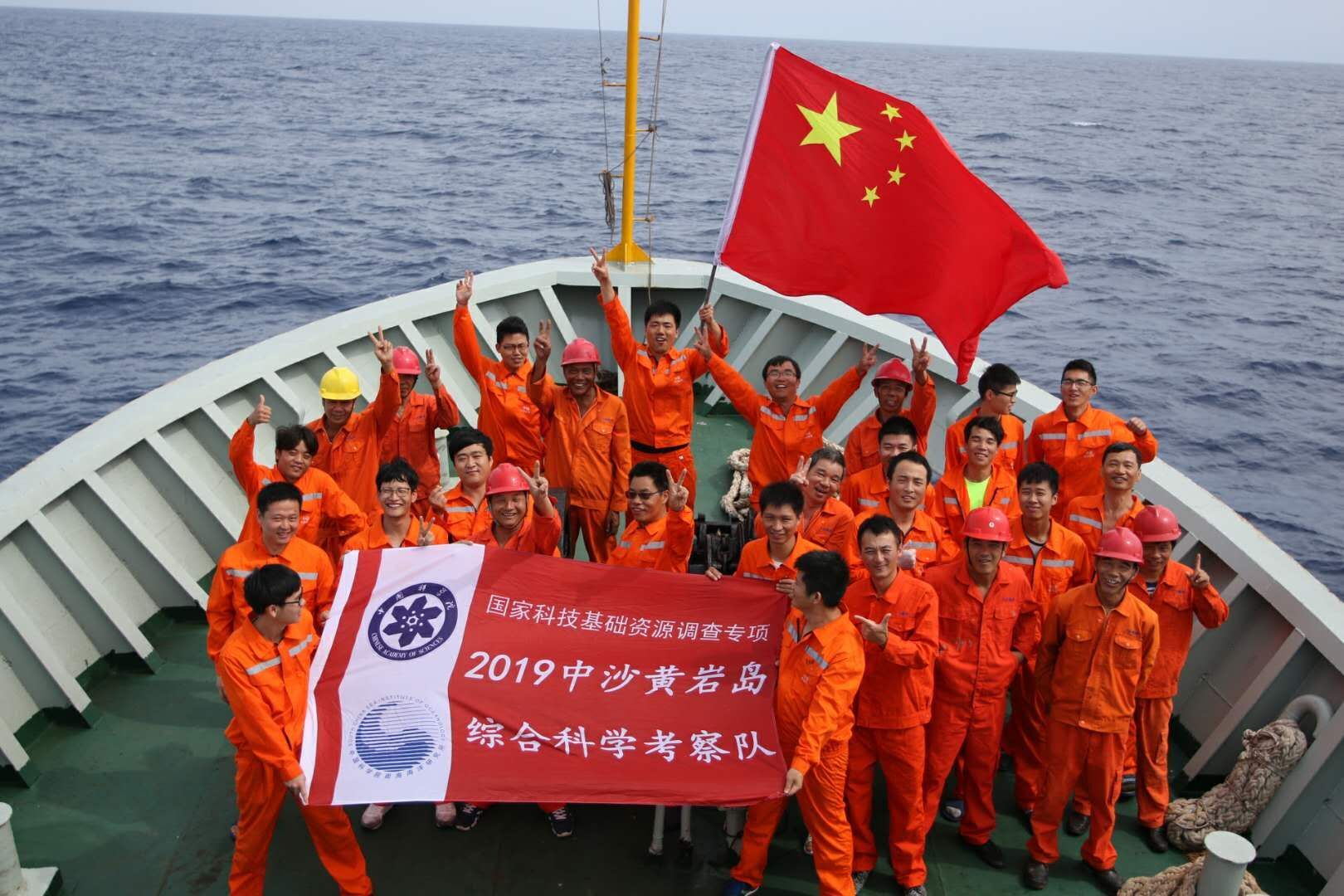 2019年5月28日,秦耿(红旗正下方)随船到达中沙群岛黄岩岛海域